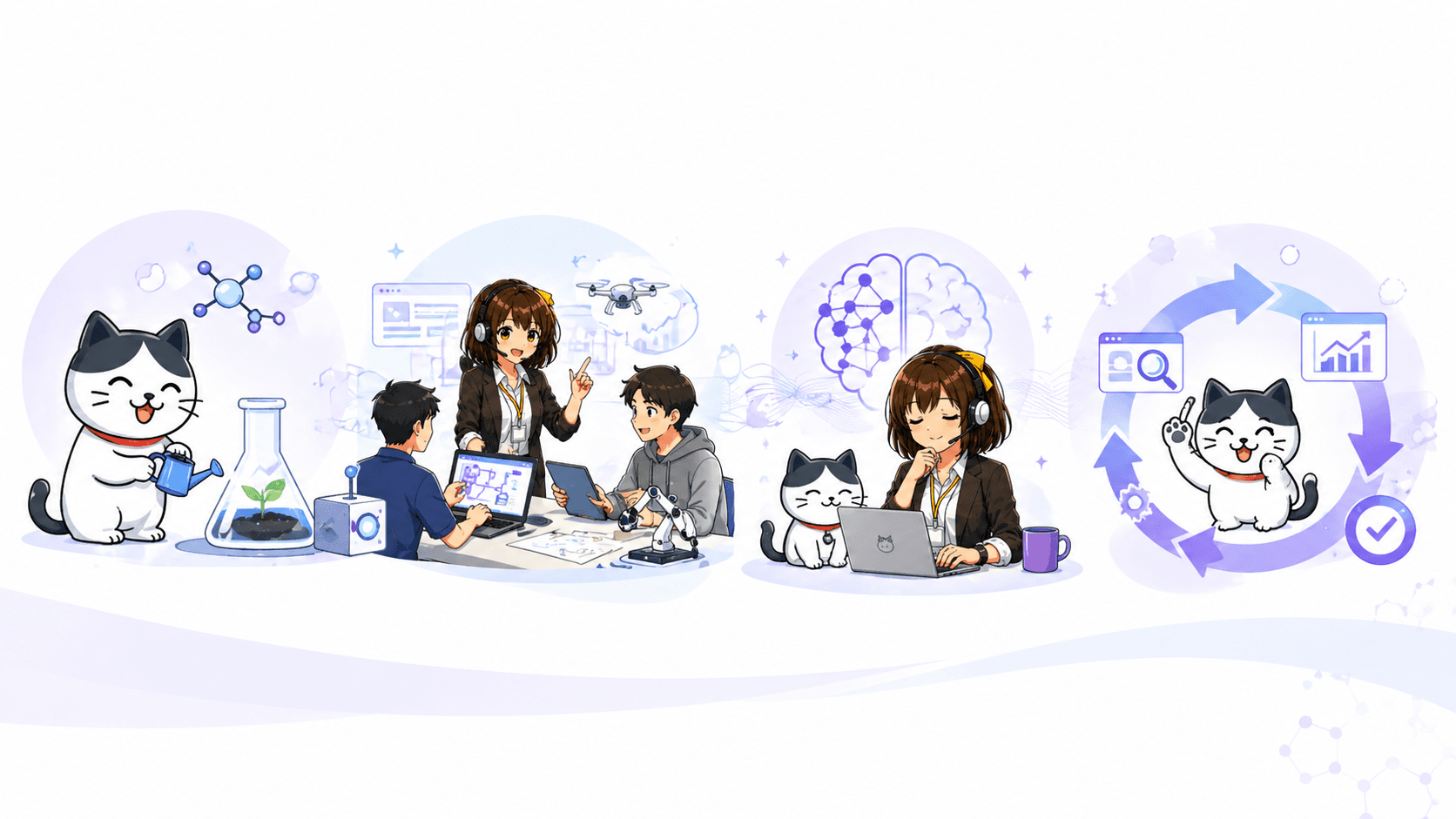 私たちは、リーンな考え方を土台に、 AIと人が一緒に働くための道具を育てています。 大きく作り込む前に小さく試し、 現場から学び、改善を積み重ねます。